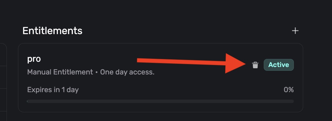 You can manually grant a user any entitlement your app offers. This is useful for activating pro features for someone, handling support issues, and more.